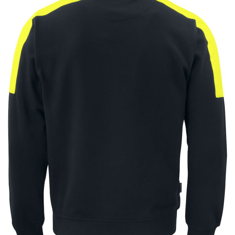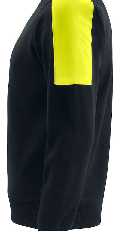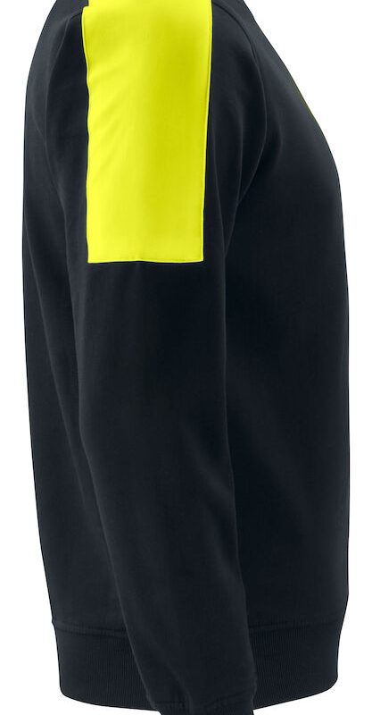 Sweatshirt col rond 100% coton -280 grs – Bandes fluo s/ épaules – bords côtes aux poignets + taille – Certification Oekotex 100 – Lavage 60°