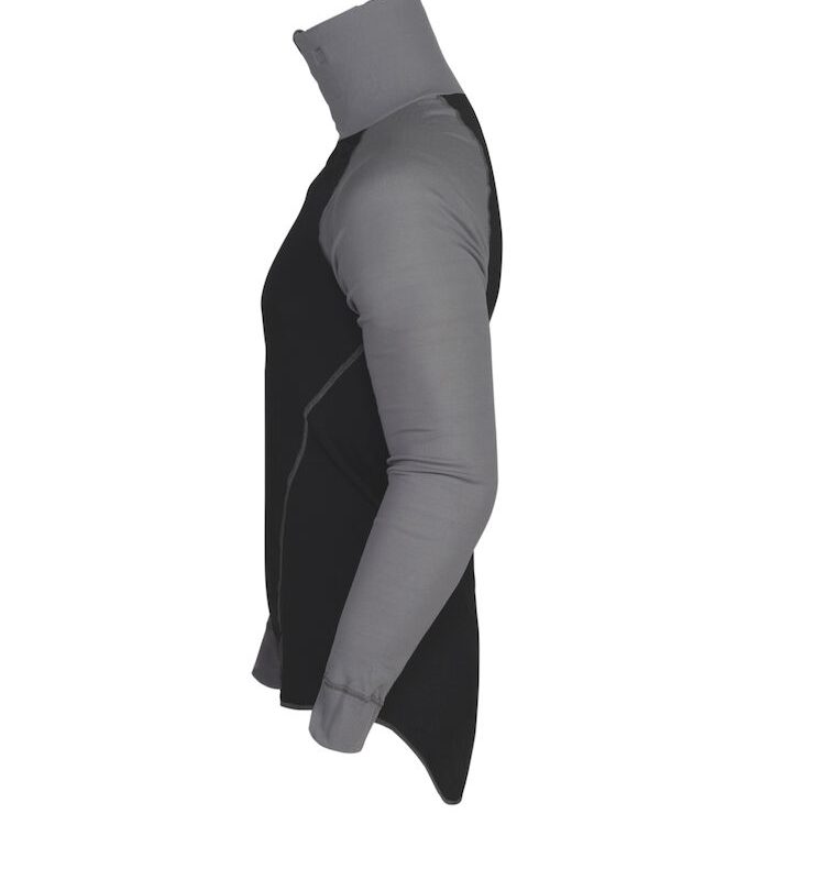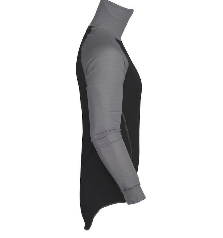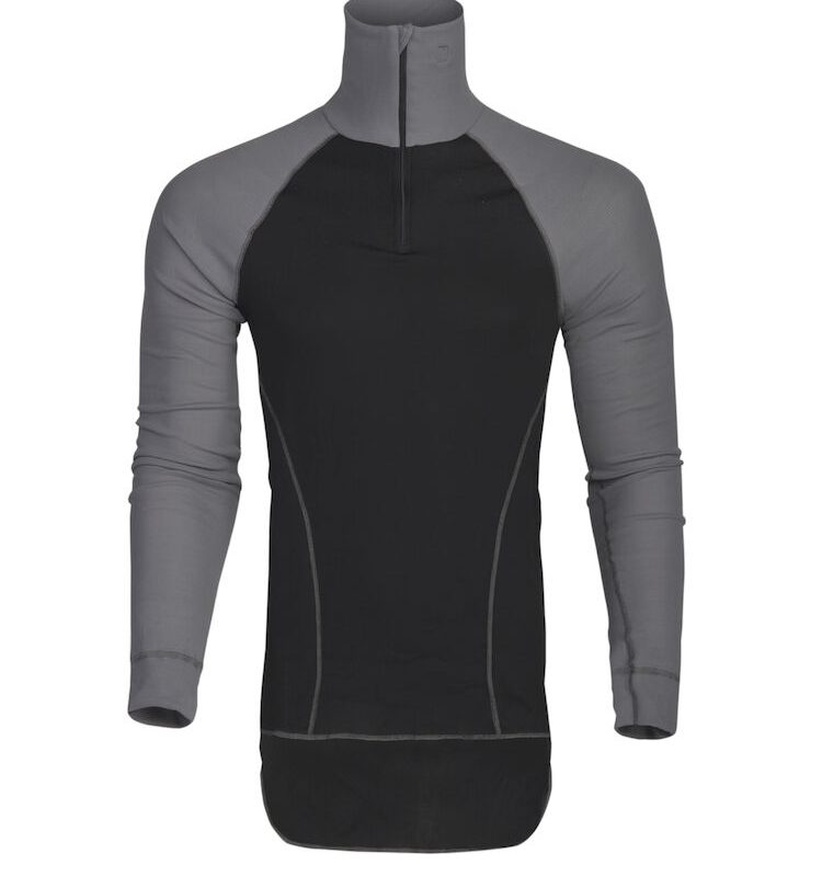 Sous-vêtement thermo-régulateur col zip – Couche 1 -Textile Craft® ! Evacuation optimale de la transpiration + tenue du corps au chaud – Très technique et confortable – col montant – 135 g/m2 – coupe compressée – Manches raglan- bas du dos + long pour protection des reins – Pas de coutures latérales pour supprimer tous les frottements et les irritations -Autres coutures sont flatlock – Lavage 60°