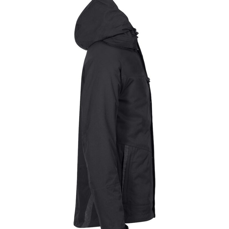 Parka imperméable et coupe-vent – Doublure amovible – Coutures thermo-soudées – Zip central double ouverture Haut + Bas sous rabat pare-pluie a/ boutons pression – Poches poitrines dont 1 a/ support en D porte-badge – Zips étanches – Poches latérales spacieuses – Capuche amovible réglable 2 directions – Cordon de serrage à la taille – Poignets réglables en Velcro – passe-poucess