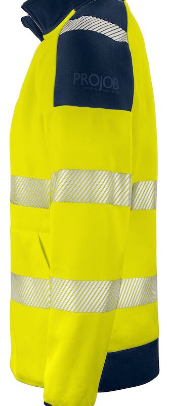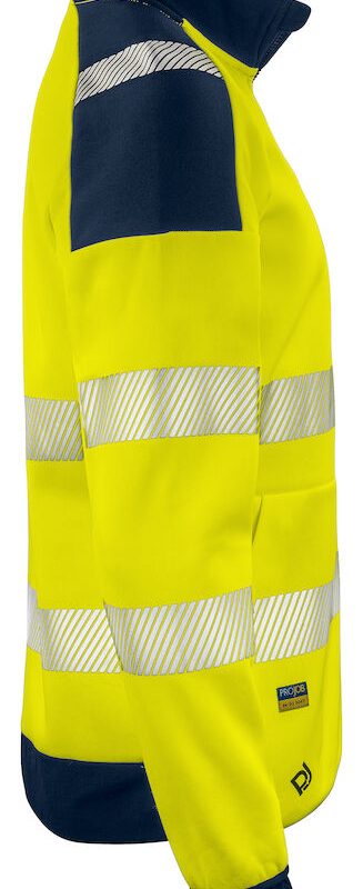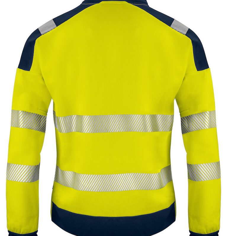 Sweatshirt technique – Zip robuste sur le devant – Empiècements contrastés aux épaules et à la taille – Coupe ajustée – Empiècement softshell stretch au bas du dos pour un meilleur confort – Grande poche sur le côté + poches intérieures en mesh – Extension des poignets en softshell + passe-pouces – Bandes 3M HV segmentées – Finitions réflectives sur les épaules – col montant – EN ISO 20471 CLASSE 3/2
