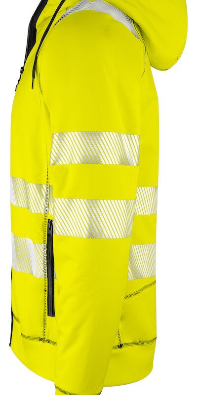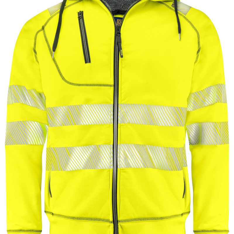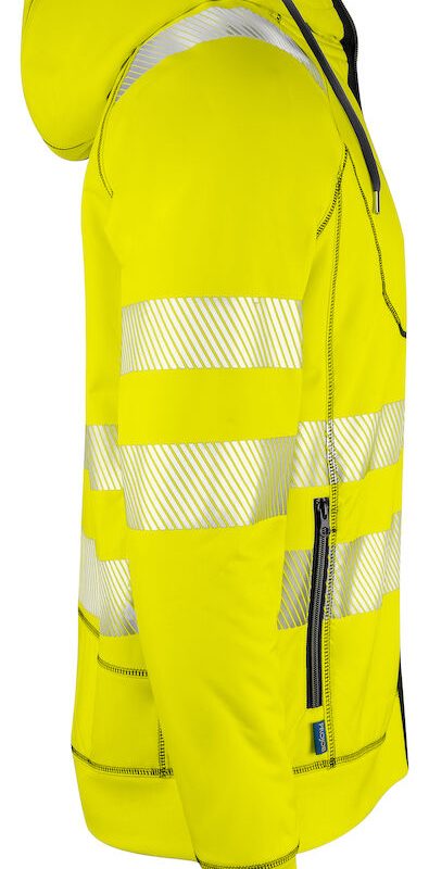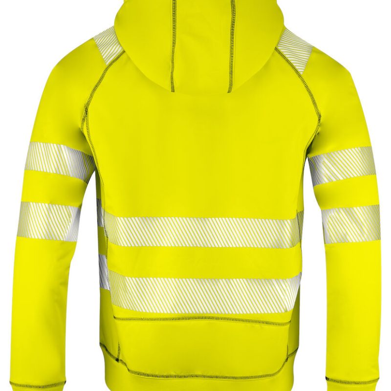 Swetashirt capuche – Fibres de fourrure intérieures pour garder le corps au chaud – Poches zippées – Poches poitrine zippée – 2 poches intérieures – Capuche réglable – bords côtes taille et poignets – Finitions reflectives aux épaules + bandes HV 3M segmentées – EN ISO 20471 CLASSE 3/2