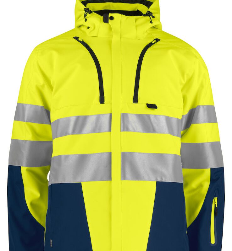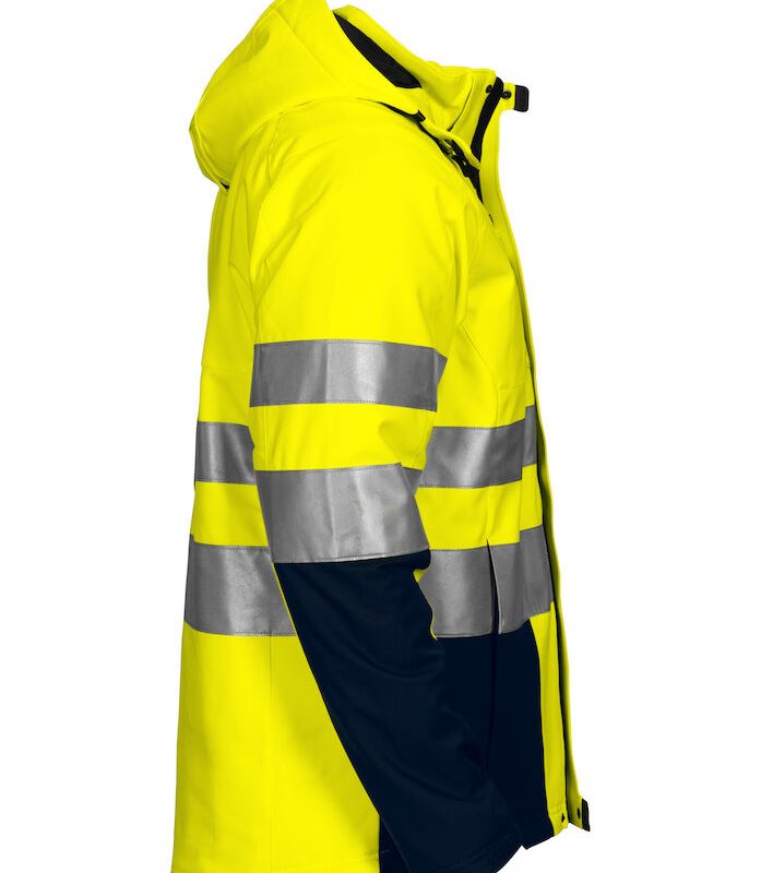 Parka softshell doublée – 3 couches – Coupe-vent et déperlante – Technologies Craft VENTAIR – Zip central YKK® – Ouverture sous les bras a/zips étanches+ mesh pour une meilleure ventilation – 260 g/m2 – 2 poches poitrine – Col doublé polaire pour plus de confort – Crochet pour badge d’identification – 2 poches latérales + poche sur la manche gauche – Poche intérieure a/ smartphone system – Taille + Poignets ajustables – Dos + long pour une protection optimale des reins – Bandes réfléchissantes cousues horizontales – Capuche ajustable et amovible – La doublure est zippée pour faciliter la broderie et la sérigraphie – HV EN ISO 20471 Classe 3/2