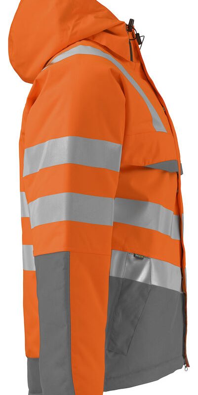 Parka technique et chaude – Coupe-vent / imperméable 8000 mm et respirante 8000 g/m2/24hres – Technologies CRAFT® : PRO VENT® + VENTAIR® + PRO THERMAL® – Membrane Thinsulate isolante 3M – Coutures thermo-soudées – Zip central YKK® double ouverture haut + bas sous rabat a/gouttière pour une meilleure protection contre la pluie et le vent – La doublure en nylon est encore plus chaude – Capuche réglable amovible – Bandes réfléchissantes striées horizontales + épaules pour une meilleure souplesse – Col doublé polaire pour + de confort – Taille ajustable par cordon intérieur – 2 poches poitrine zippées doublées polaire – 2 grandes poches à rabat – Coudes pré-formés – Poignets ajustables – HV EN ISO 20471 Classe 3