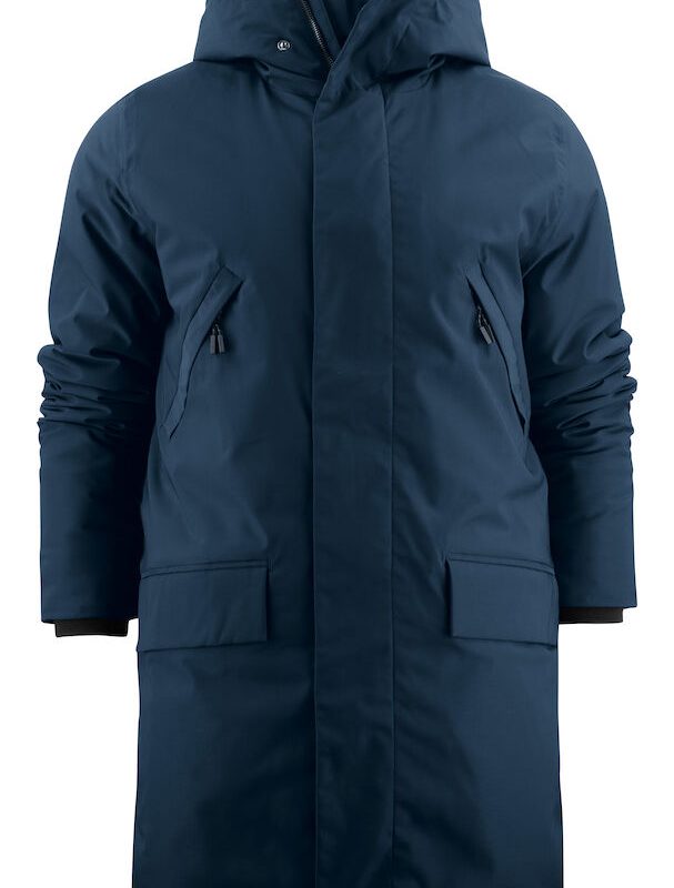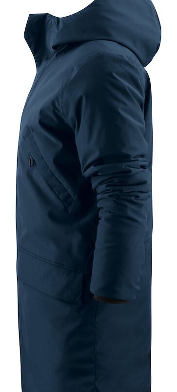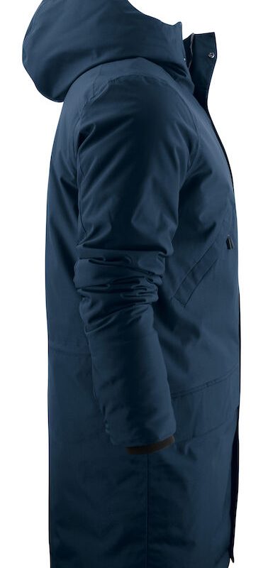 Parka ¾ touché soft, imperméable, respirante et étanche eau WP5000/ vent MVP5000. 100% polyester. Rembourrage en fibre écologique d’origine renouvelable « Bluesign », 160g/m2 corps et 140g/m2 manches. Coutures étanches. Cordons de serrage ajustables au niveau de la capuche et bas de la veste. Fermeture à double curseurs sur le devant, zip YKK. Aimant sous le rabat tempête avec boutons pression en métal au col et bas de la parka. Deux poches « Napoléon » zippées et deux poches latérales à rabat aimantées. Manches réglables avec boutons pression et poignets bord-côtes. Fermeture éclair intérieure au bas de la veste permettant un éventuel marquage.