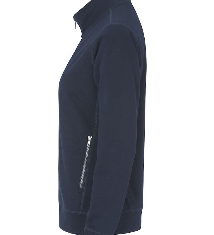 Sweat-shirt à fermeture éclair complète avec un toucher plus lourd en éponge française (bouclé à l’intérieur). Fermetures à glissière YKK visibles avec détails métalliques en argent antique. Double col façonné avec côtes 2×2 à l’intérieur. Bas de manche en tissu lisse et côtes 2×2 aux poignets. Modèle légèrement cintré.