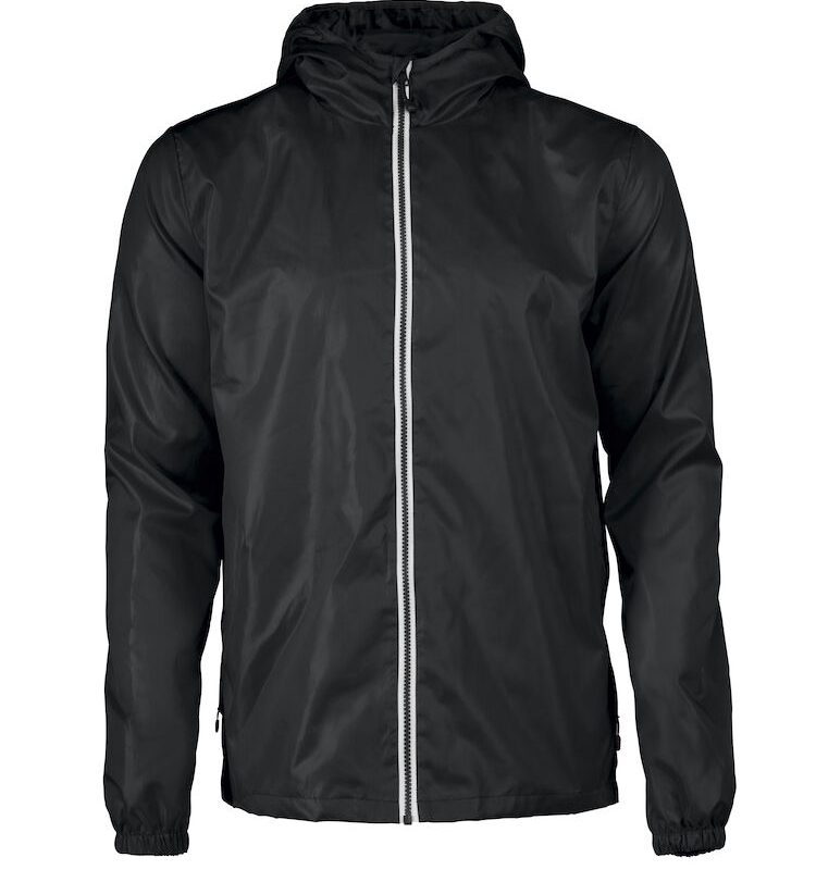 Veste coupe-vent pour hommes à la capuche avec un tissu résistant à l’eau. Deux poches avant, zip YKK contrasté et doublure à l’intérieur. Capuche avec doublure et élastique de serrage.
