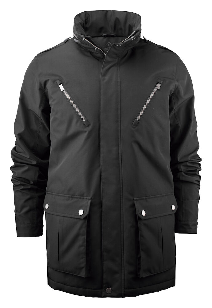 Elégante veste urbaine doublée, légère avec capuche insérée dans le col. Epaulettes à pression. Deux poches à soufflet et deux poches poitrine avec zip en métal.