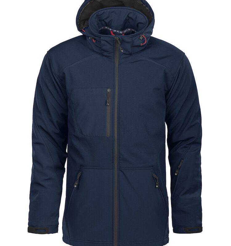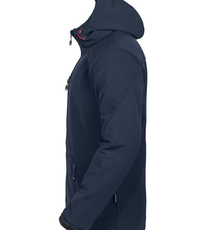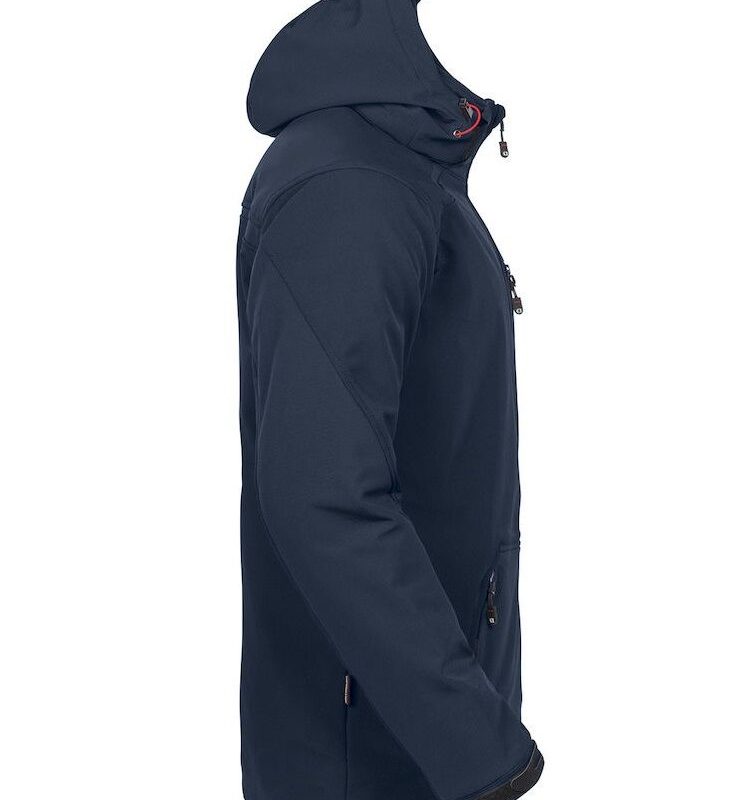 Veste softshell 3 couches, respirante et déperlante (WP 3000/ MVP 1000). Capuche casquette réglable et amovible, doublée polaire, poches extérieures et sur la manche zippées YKK. Elastique de serrage au bas de la veste. Velcro de réglage aux poignets et manchons avec passe pouce. Poche intérieure zippée pour votre portable, écouteurs .. ainsi qu’une grande poche en filet. Application décorative ripstop. Bas de la veste arrondi pour une meilleure protection.