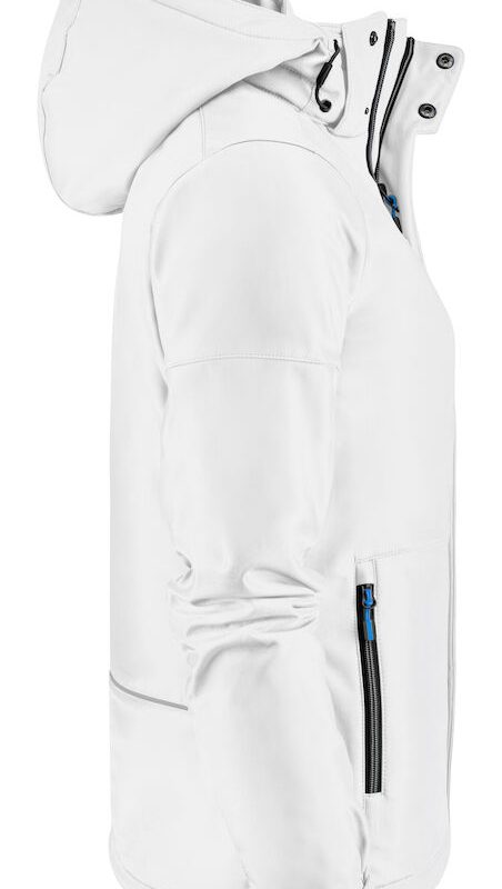Veste softshell doublée avec capuche amovible et rabat-tempête avec boutons-pression au centre du devant. Manches réglables avec fermeture velcro et cordons de serrage à la capuche et à l’ourlet. 2 Poches intérieures avec fermeture éclair. Passepoil réfléchissant dans le dos. Étiquette d’encolure déchirable et étiquette de taille tissée séparément. Poche à l’intérieur de la couture du côté gauche pour y coudre une puce à linge. Tirettes de fermeture éclair de couleur contrastée. Celles-ci peuvent être remplacées par l’une des autres couleurs disponibles si nécessaire. Certifié Oeko-Tex 100