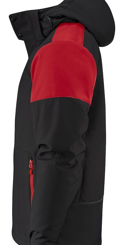 Veste softshell bicolore, matelassée, avec capuche amovible, zips contrastés et rabat-tempête avec boutons-pression au centre du devant. Manches réglables avec fermeture velcro et cordons de serrage à la capuche et à l’ourlet. 2 Poches intérieures avec fermeture éclair. Passepoil réfléchissant dans le dos. Étiquette d’encolure déchirable et étiquette de taille tissée séparément. Poche à l’intérieur de la couture du côté gauche pour y coudre une puce à linge. Tirettes de fermeture éclair de couleur contrastée. Celles-ci peuvent être remplacées par l’une des autres couleurs disponibles si nécessaire. Certifié Oeko-Tex 100.