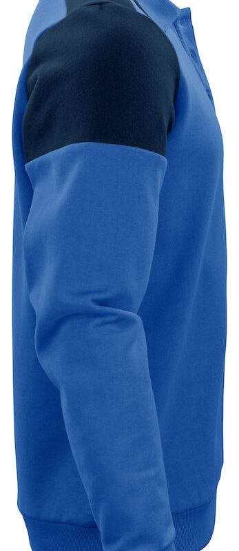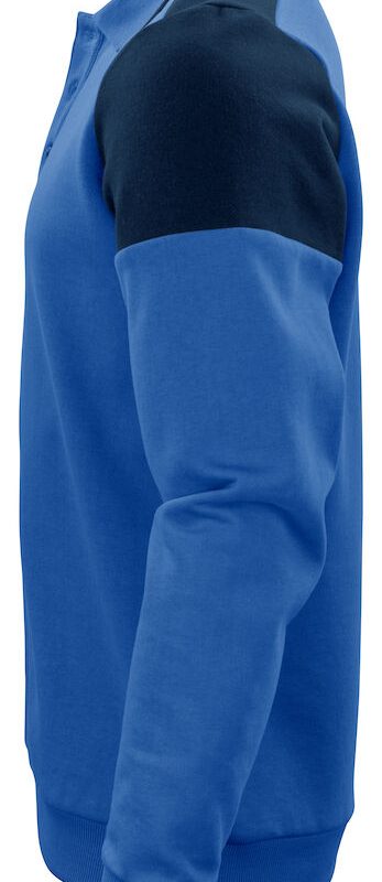 Sweat bicolore avec col polo et liseret de couleur contrastée. Bord-côtes 2×2 avec élasthanne aux poignets et en bas du polo. Bande de propreté au col et patte de boutonnage de couleur contrastée. Étiquette détachable au col et étiquette à la taille tissée séparément. Emplacement spécifique afin d’intégrer une puce pour lavage industriel. Certifié Oeko-Tex® 100.