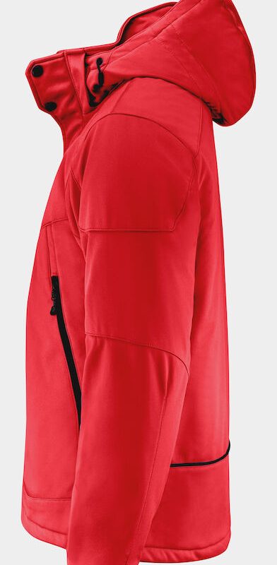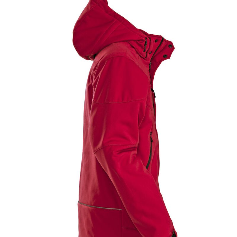 Parka softshell, doublée avec capuche amovible, manches ergonomiques, lien de serrage a la taille et scratch velcro aux bas des manches. Deux poches avant et poche poitrine zippées. Deux poches zippées et une poche en maille à l’intérieur.