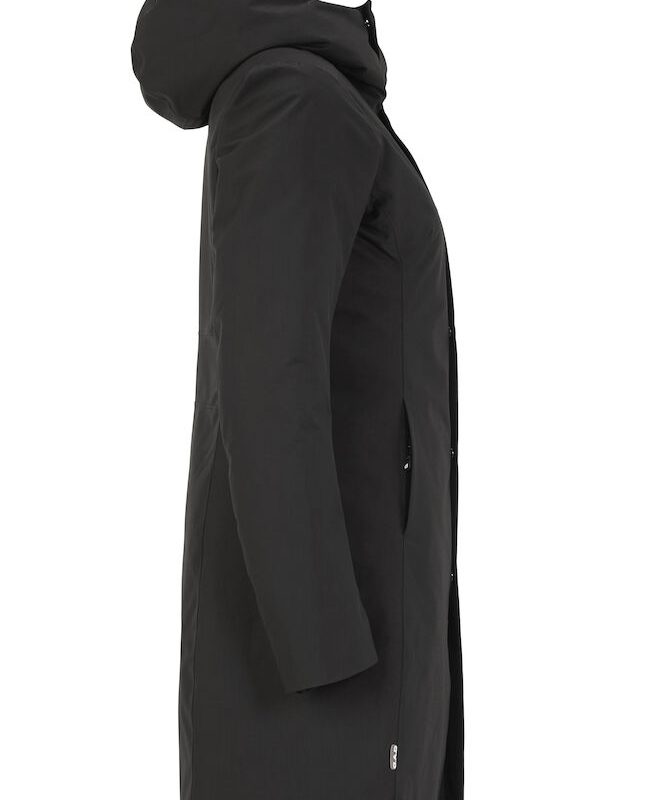 Manteau doublé ajusté étanche et respirant (WP 3000/ MVP 3000) coutures étanches. Manches pré-coudées avec coudière renforcée. Fermeture éclair YKK sur le devant qui monte jusqu’au col, rabat tempête avec boutons pression. Poches avant à rabat. Une poche intérieure. La capuche peut être ajustée à l’avant comme à l’arrière. Le modèle femme est un peu plus long et plus cintré.